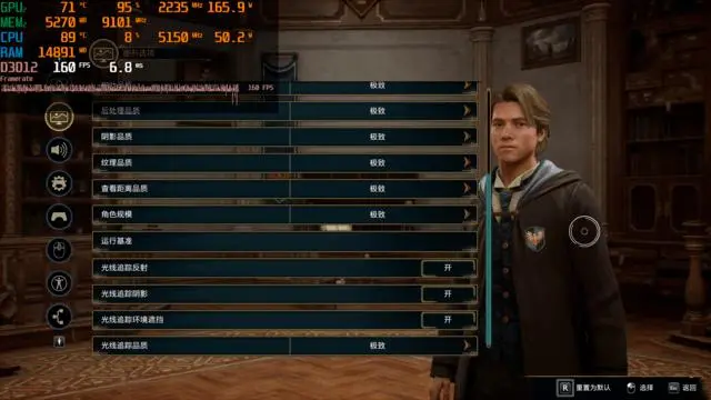 ollowed by “Hogwarts Legacy”, the image quality is also full, the resolution is still 2K, the image quality is select to the ultimate. And the ultimate light tracing is turned on, and the DLSS selects the quality. In outdoor scenes, the game frame rate can be stabilize at around 120 frames, and in indoor scenes, it can be stabilized at around 150 frames, which is also very scary.